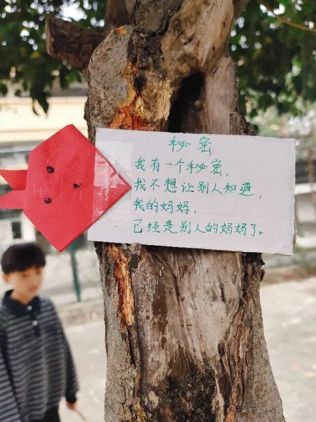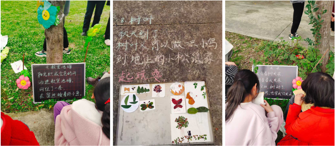 办法是逼出来的。她买了气球,一个个吹起来挂在操场的树上;把童诗一笔一划写在地上、墙上、小黑板上;找来了树洞、透明雨伞、懒人沙发,甚至做了“发呆的树墩”,还特意叮嘱高年级学生“别捏爆我们的气球”。