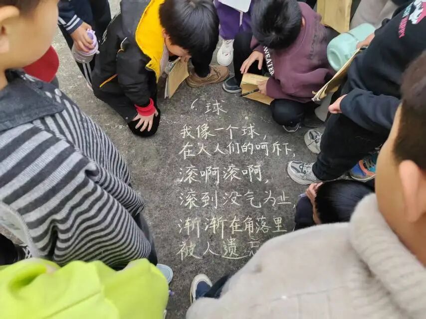 开展的那天下午,25个气球只剩6个,但没人在意这个小遗憾——孩子们看到满操场的童诗时,尖叫着围了上来。